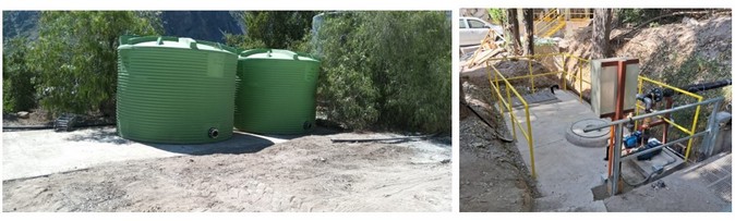 Planta de Captación de agua: Suministro y construcción de planta de captación de aguas para Planta de yeso Romeral ETEX. Proyecto desarrollado bajo logística de suministro e instalación. La instalación comprendío la construcción de cámara de captación en hormigón armado H-30 , considerando tabique desearenador, bombas autocebantes de elvavión de aguas, plataforma de almacenado, con etapas de floculación, decantación y acumulación. Sistema de control por sensores de nivel y línea de suministro en HDPE 75mm a Planta de agua potable con filtros de resina y carbón activado. Tiempo de ejecución de 75 días hábiles.